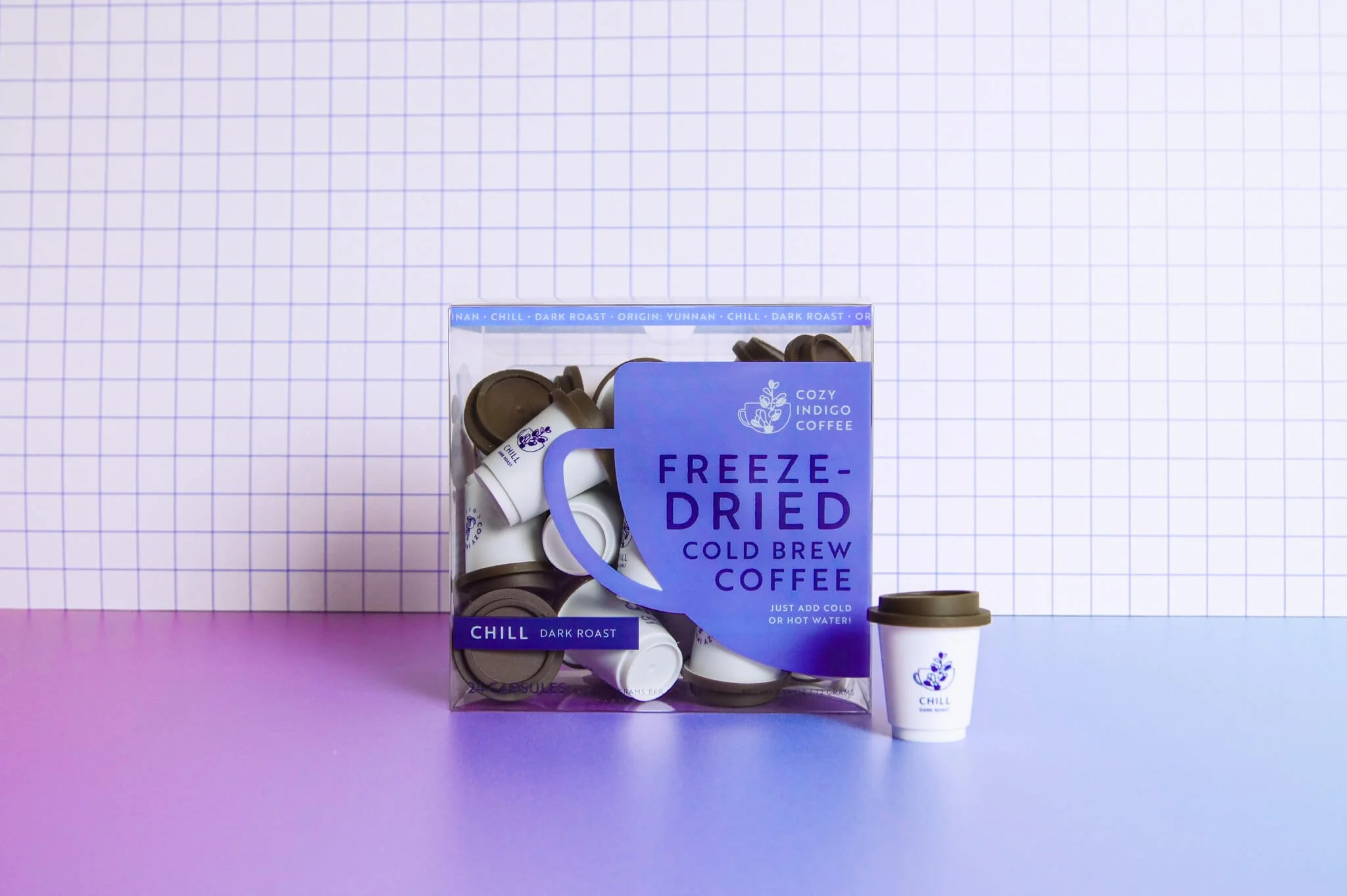 With hustle culture and coffee culture being very popular, Cozy Indigo Coffee wanted to take a step back and grow a coffee community that slows down. Cozy Indigo Coffee is for the homebody who slowly enjoys their café-quality brew in the comforts of their own home with the convenience of an instant coffee.